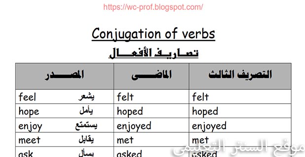 تصاريف الافعال السادس الاعدادي منقول Youtube